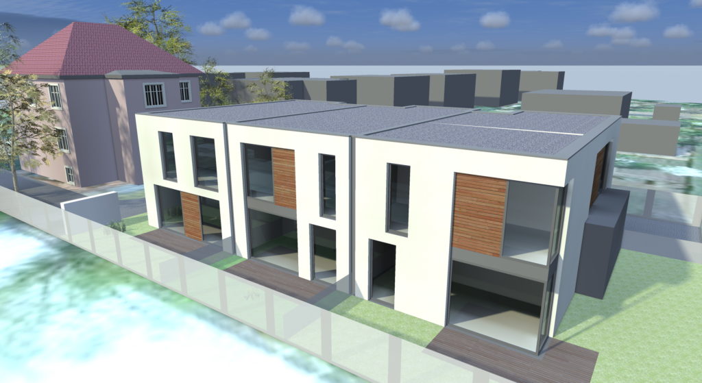 Właściciel wrocławskiej willi poprosił nas o przygotowanie koncepcji zagospodarowania tylnej części ogrodu dla potencjalnej inwestycji pod wynajem. Zaprojektowaliśmy nowoczesne dwupoziomowe mieszkania, każde z garażem oraz niewielkim ogrodem.